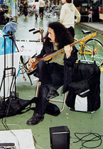 | ▲「道なる人々」のコーミンさん&嶋田康次さんの駅前演奏 |