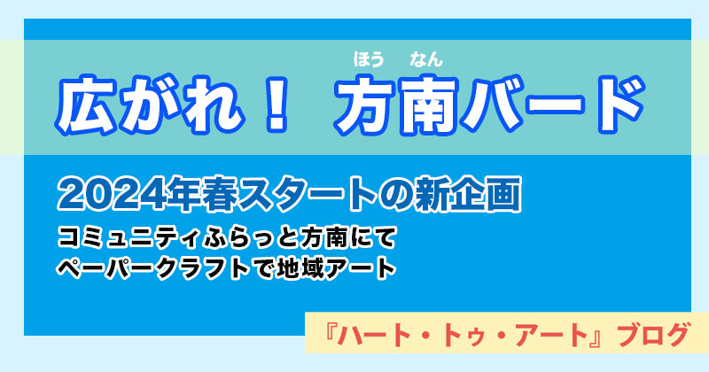 タイトルからイメージできると思いますが、鳥アート「方南バード」で地域や多世代のつながりが広がっていくことを願って行われる企画です。