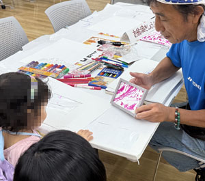 ・プラバンでヘンテコイキモノ作ろう(カナイタカコ)、抽象絵画に挑戦!(TADASUKE)、軍手で作るクリスマスてぶちゃん